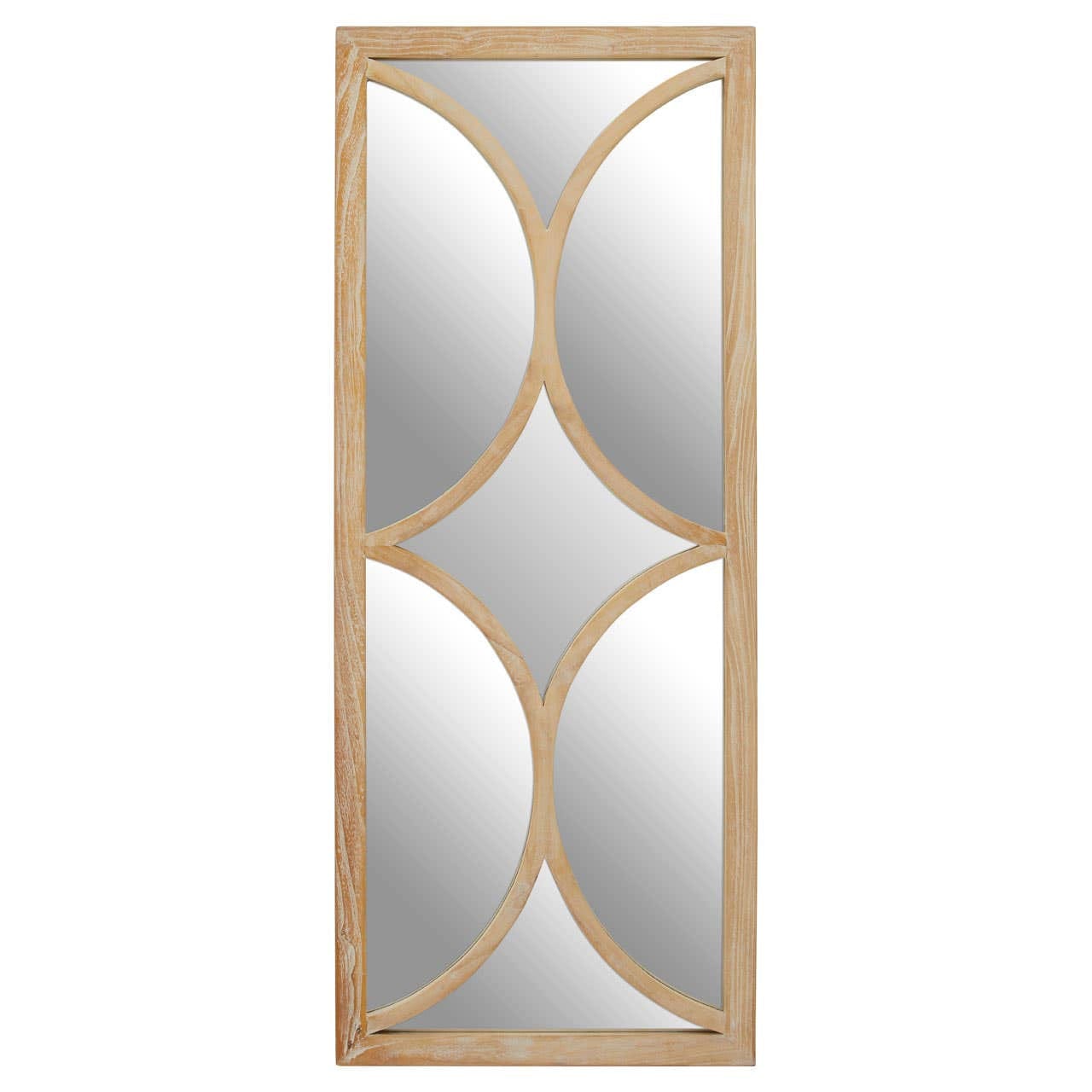 Its prominent, interlocked grain is given added prominence thanks to the flecks of white that mingle with the brown. Four semi-circles encroach upon the glass to produce a diamond at the centre. Display it landscape or portrait with Nordic furniture and lighting.