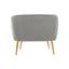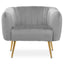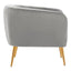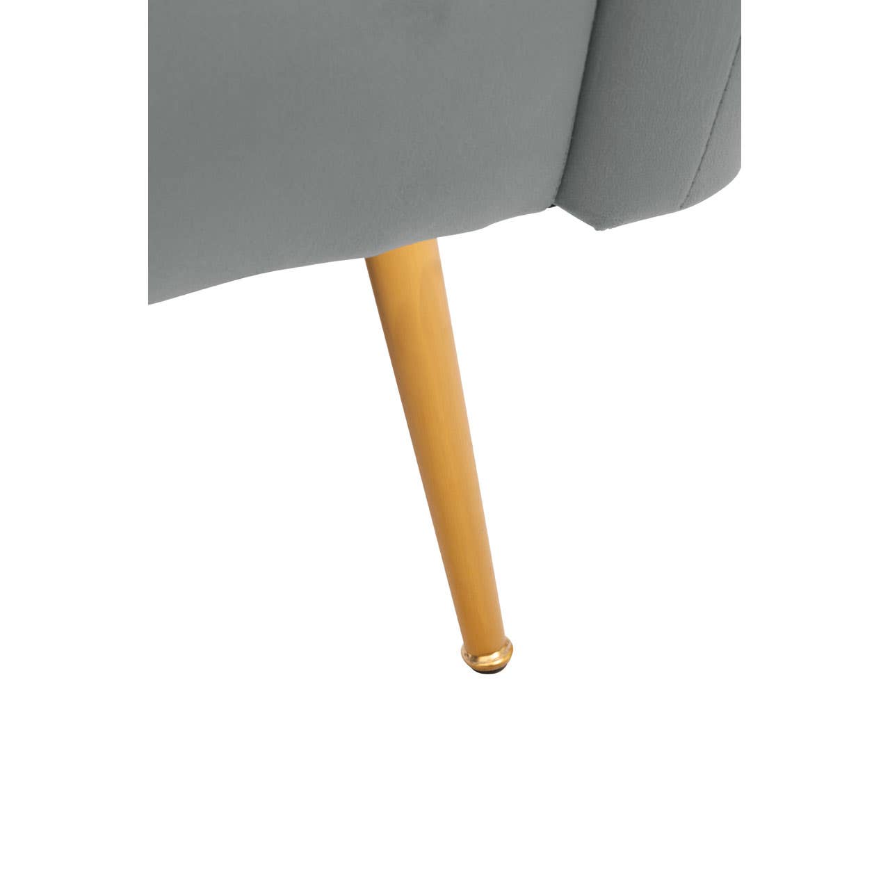 This foam-padded chair boasts an angular profile that is upholstered skilfully in grey velvet. Boasting channel tufting on the back, the U-shaped armrests offer a cosy seating experience, while the slender metal legs in the gold finish create a luxe accen