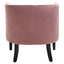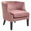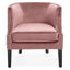 This densely foam-padded chair exhibits gliding armrests with studded detail. Upholstered in sumptuous pink velvet, this chair boasts clean-lined stitching and sits atop a black rubberwood base which adds support with style.