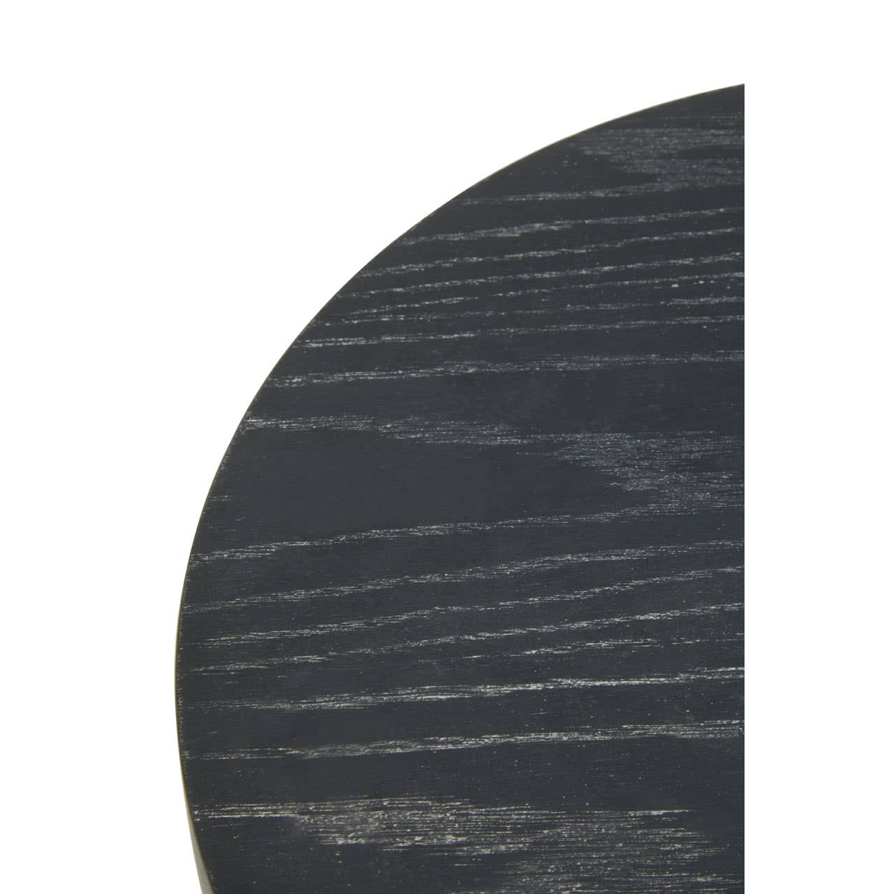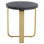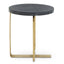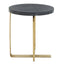 This side table goes well with subtly-industrial spaces. The oak veneered top in sandblasted black and grey finish features a round shape, creating a rustic charm. The stainless steel base in the gold finish provides added support with style.