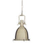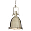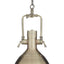 The Lexington pendant light is suspended from the ceiling by a long iron link chain. The chain attaches to the dome shaped shade via a slim mount. Three tapering switches give the light an upcycled look, while protruding screws at the base are used to remove the glass diffuser for easy bulb replacement. The iron has an antique brass finish that complements silver and champagne gold metals.