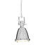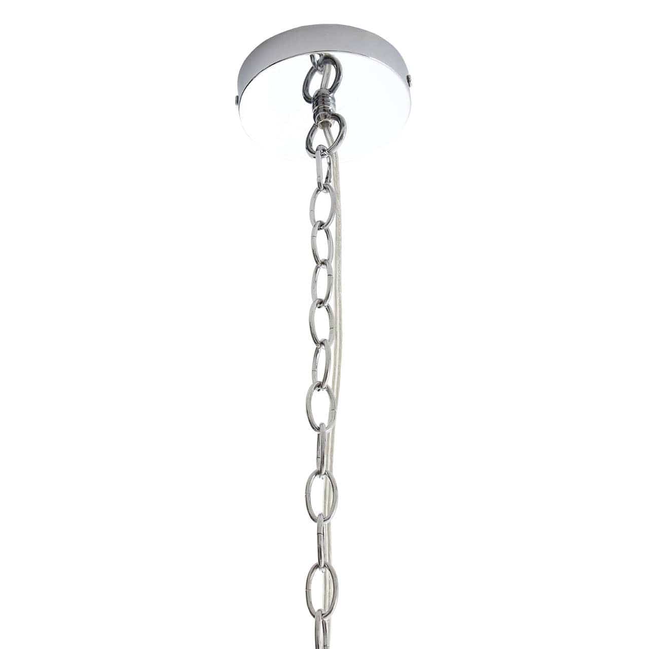 The Lexington pendant light is suspended from the ceiling by a long iron link chain. The chain attaches to the dome shaped shade via a slim mount. Three tapering switches give the light an upcycled look, while protruding screws at the base are used to remove the glass diffuser for easy bulb replacement. The iron has a chrome finish that complements reflective silver and copper metals.