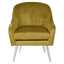 Upholstered in tactile mustard-coloured velvet, the Louxor armchair is soft and luxurious to the touch. Its curved armrests feature stylish pleating detail, adding to the chair's contemporary appeal. Four angled wooden legs hold the chair and boast a striking silver finish, contrasting with the warm toned upholstery.