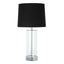 This table lamp with a clear glass stand creates an empty vase look complete by chrome support that extends to form its base. The sculptural base and hardware make it versatile for contemporary decors.