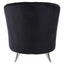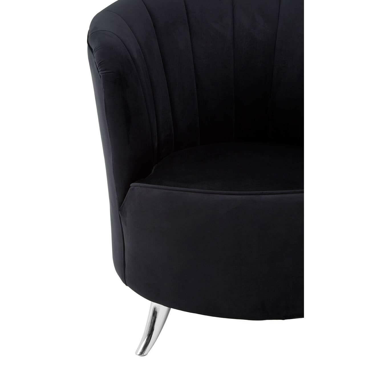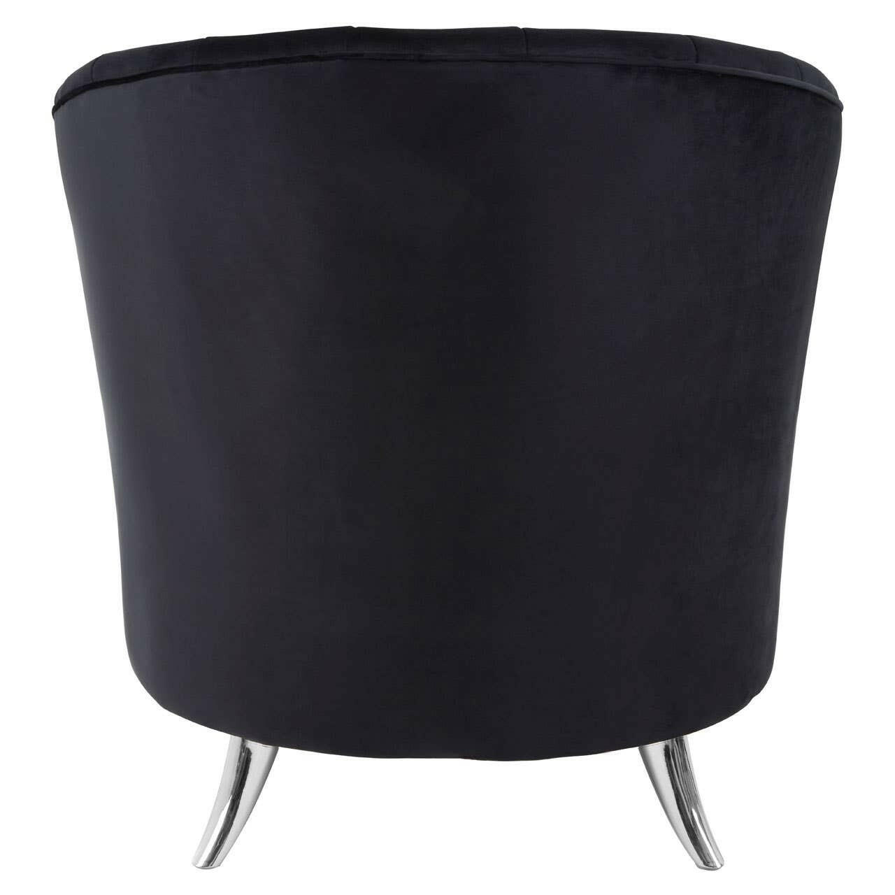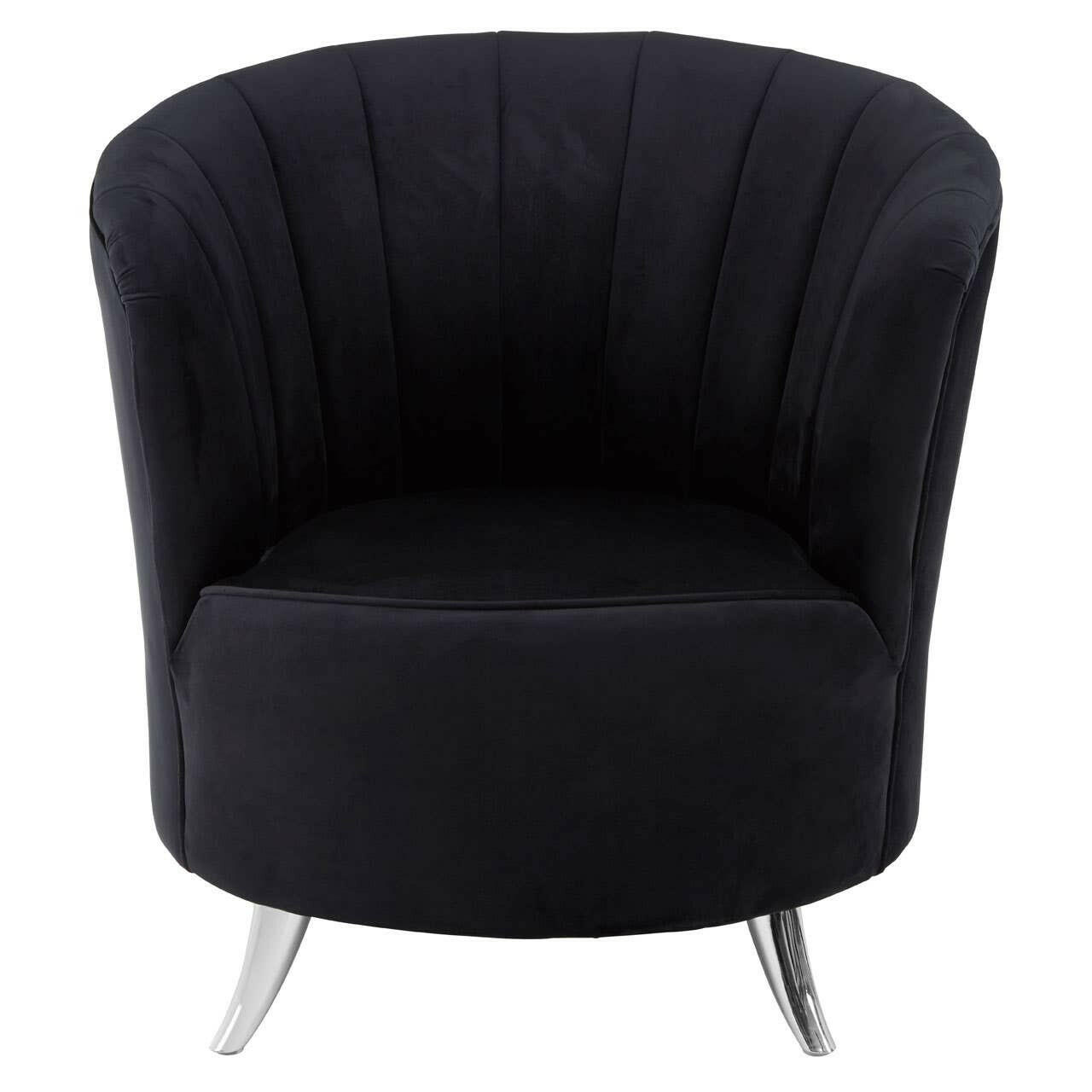 This stylish chair introduces a contemporary twist to the traditional tub design. It retains the high sides and rounded lines, but features a channel tufted backrest that gives it a subtly textured look. Its feet are made from sleek metal and have a reflective silver finish that contrasts with the black velvet.