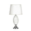 Combining style, elegance and practicality, the Maisy table lamp exudes class enhancing the look of your bedroom, dining room or living area. The chic white ceramic base is accentuated by the delicate and beautiful crystal detail that will glisten under the light while retaining its durable properties. The sleek metal base has a chrome finish that will shine while ensuring the lamp is stable. Complementing the beautiful base is a double layered pleated white fabric shade that will emit a soft warm glow into your room. As fashionable as it is functional, the Maisy table lamp will complement most decors creating a fantastic feature in your room.