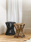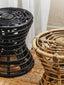 Exhibiting artisan craftsmanship, the round base and top of this stool are skilfully hand woven from thick stripes of natural grey rattan. The slimmer bands are wrapped neatly around the sides, featuring a pinched design.