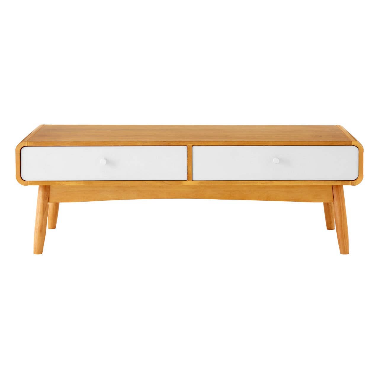 With four useful drawers encased in a slim wooden cabinet, the Malmo coffee table is a blend of function and style. Supported by slim oak legs, the table's rounded edges are complemented by the carved skirting. The face of each drawer is given a crisp white finish that serves as a counterpoint to the beautiful graining on the wooden surface.