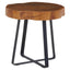 This side table features a solid teak wood frame in ample natural warmth and dense grain. The asymmetric top in rustic hues is supported through a black finish cross base that adds stability to the design.