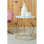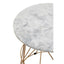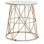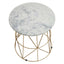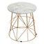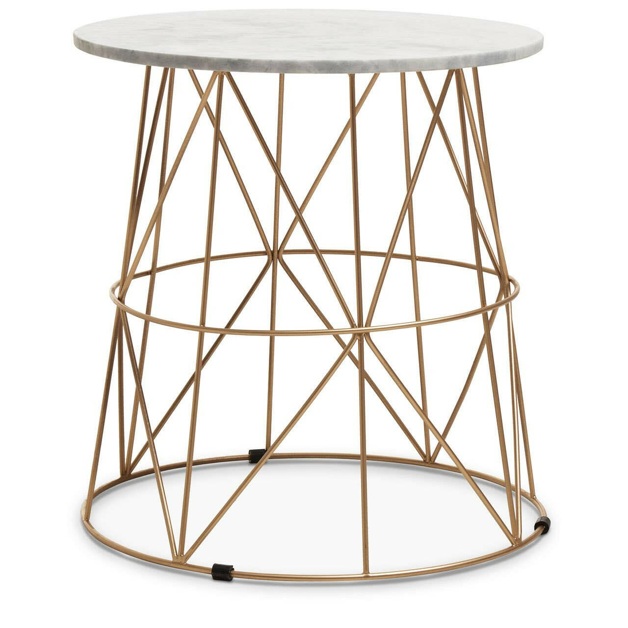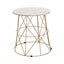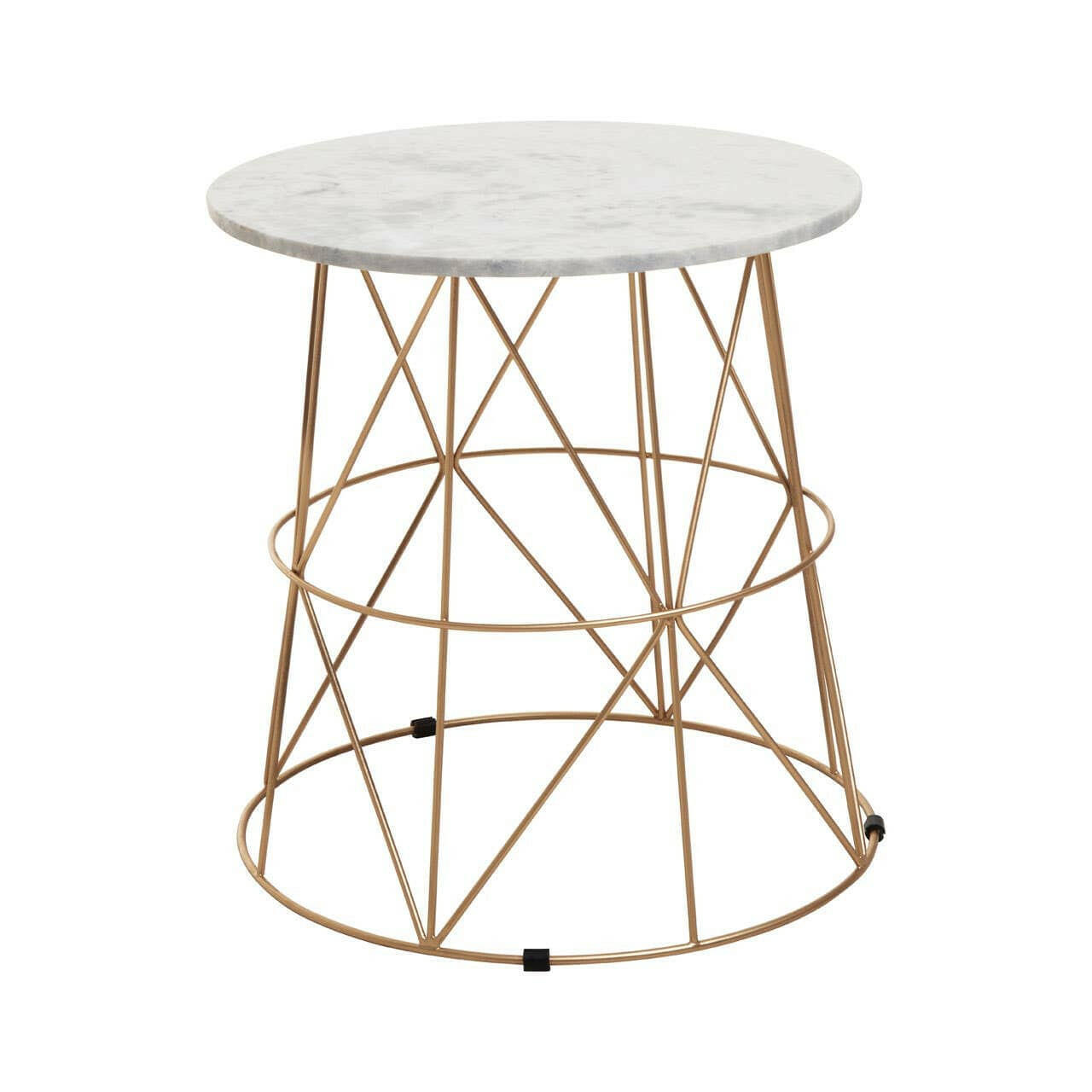 Big on the surface but small to the sight, this side table has a sleek, geometric cage like frame and merged clean lines, the round white marble top perfectly complements the gold powder coated iron base frame.