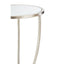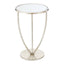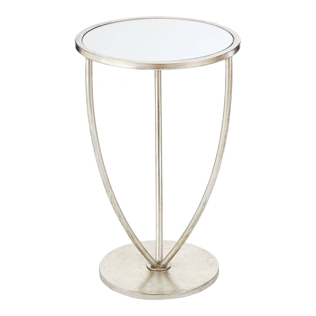 The Marcia side table is an exquisite accent piece for the living room, styling well with decadent boutique hotel furniture. Its bowed metal legs contribute to its poised character. Their reflective silver finish complements the round mirrored tabletop. Symmetry is achieved via the circular metal base which keeps the table secure.