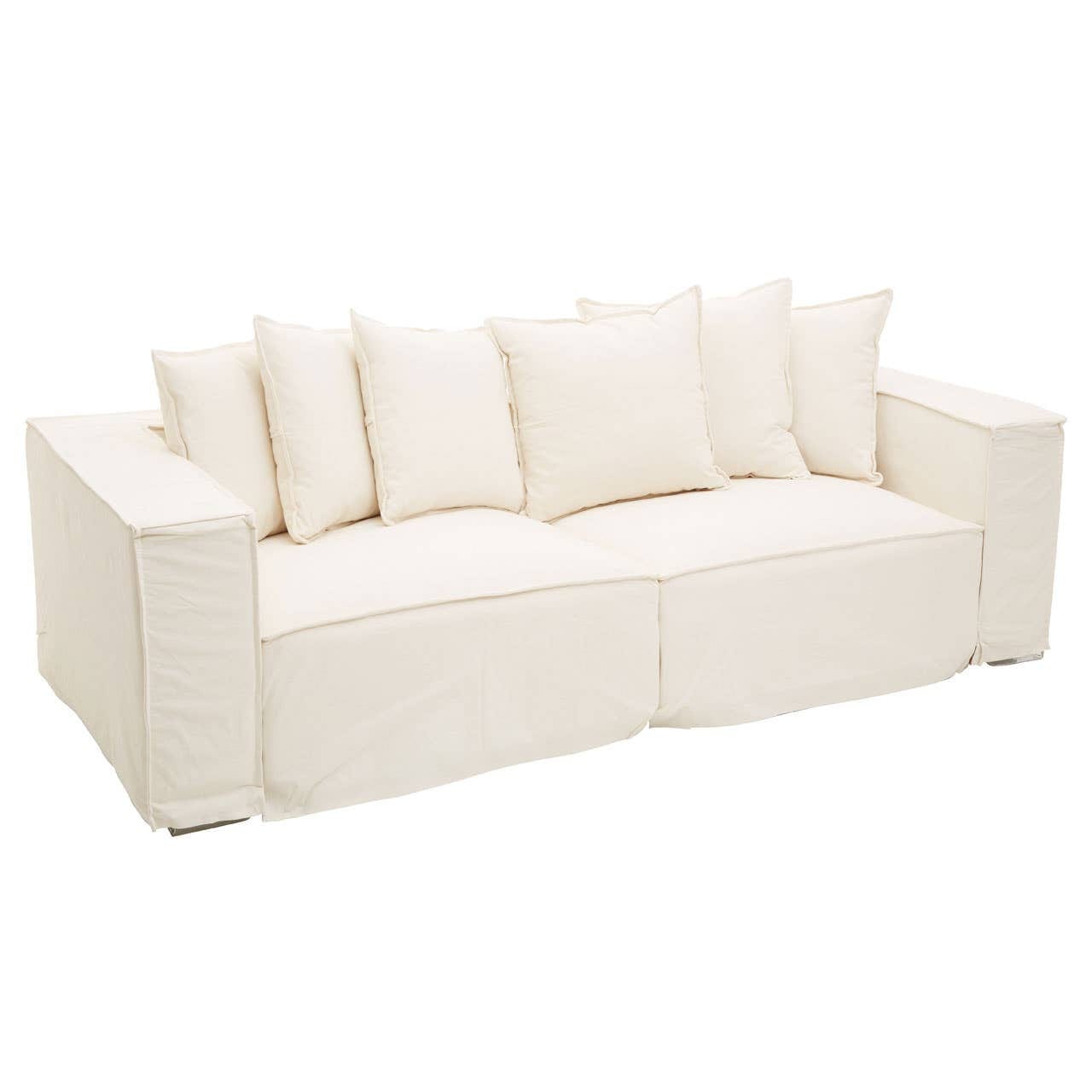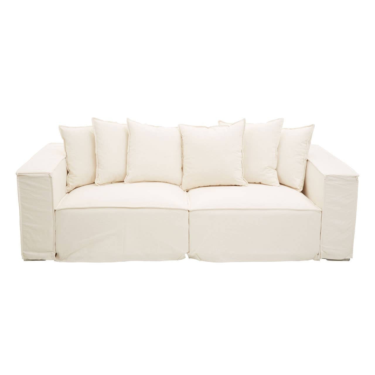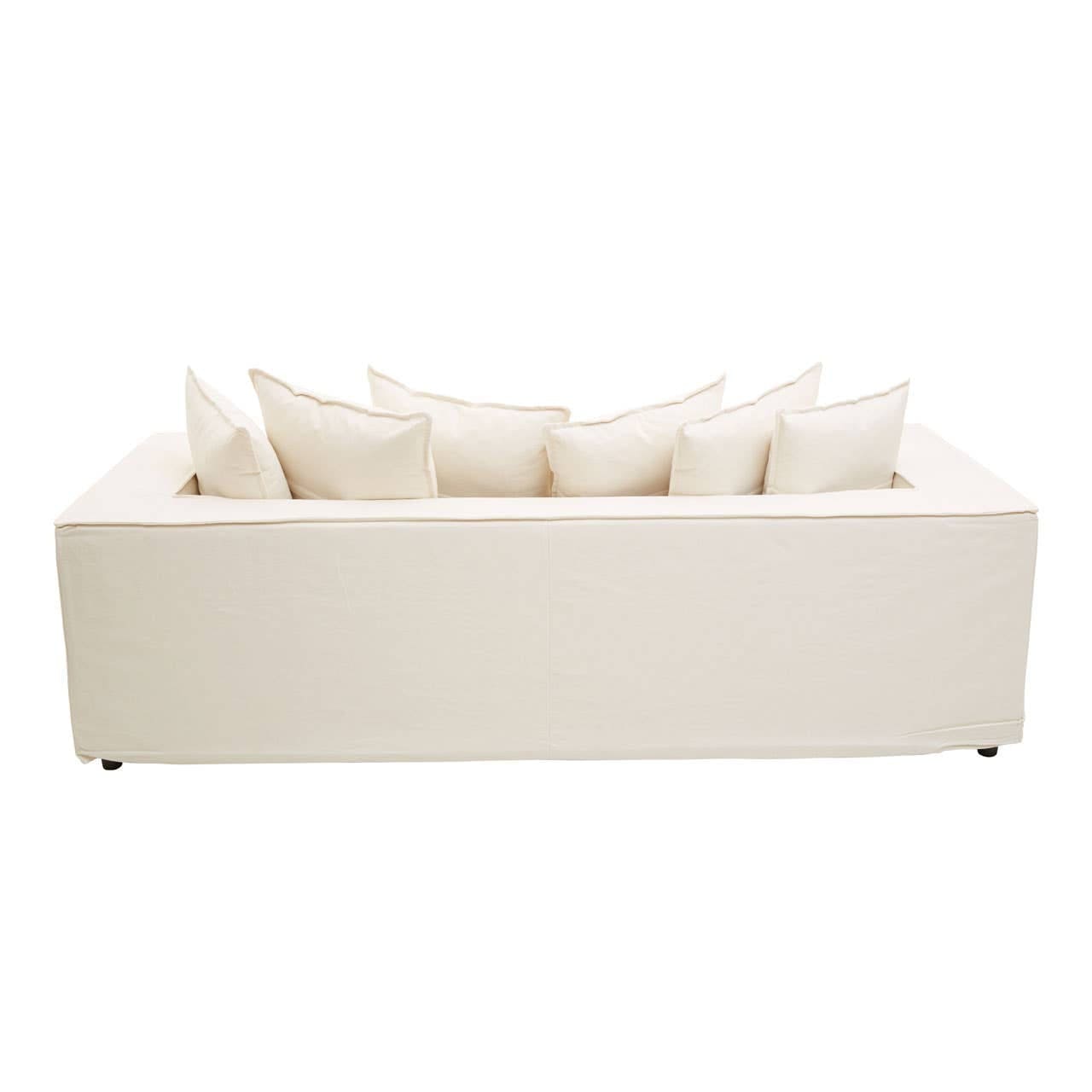 The Marseille sofa features three spacious seats and a low back aligned perfectly with its armrests. Upholstered in linen fabric, the sofa's cream colour coordinates with the matching cushions.