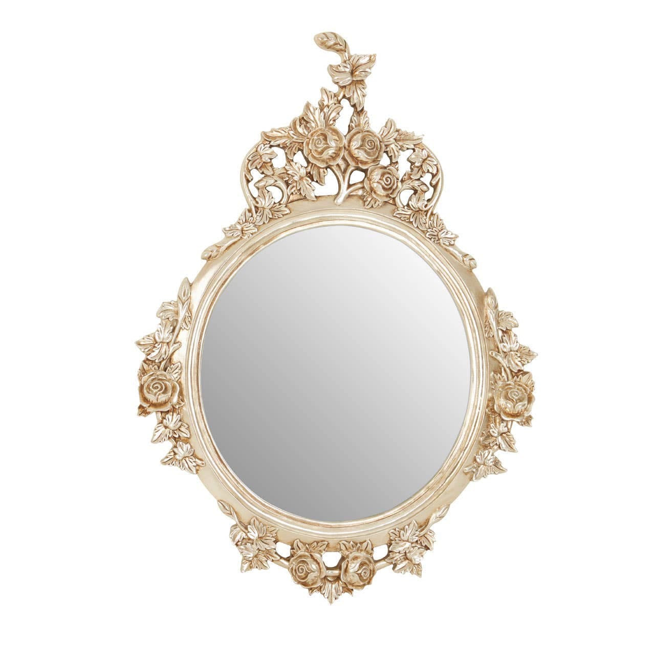 This wall mirror features intricate floral detail which effortlessly scrolls around the frame. The champagne finish oval frame has bevelled edging with linear detailing which gives it a sense of depth. This mirror?s exquisite design and neoclassical inspiration will make it an eye-catching centrepiece in the hallway or living room.