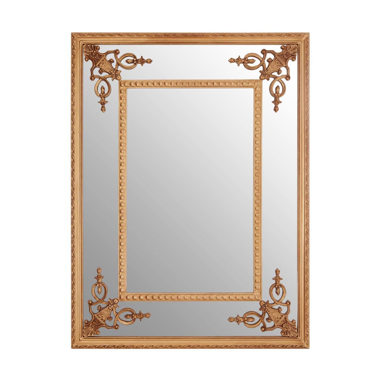 Bead detail draws the gaze to the central section while beyond this, four palmettes with an inset flower are tucked into each corner. The mirror has a gold colour that adds a rich metallic tone to the wall.