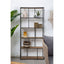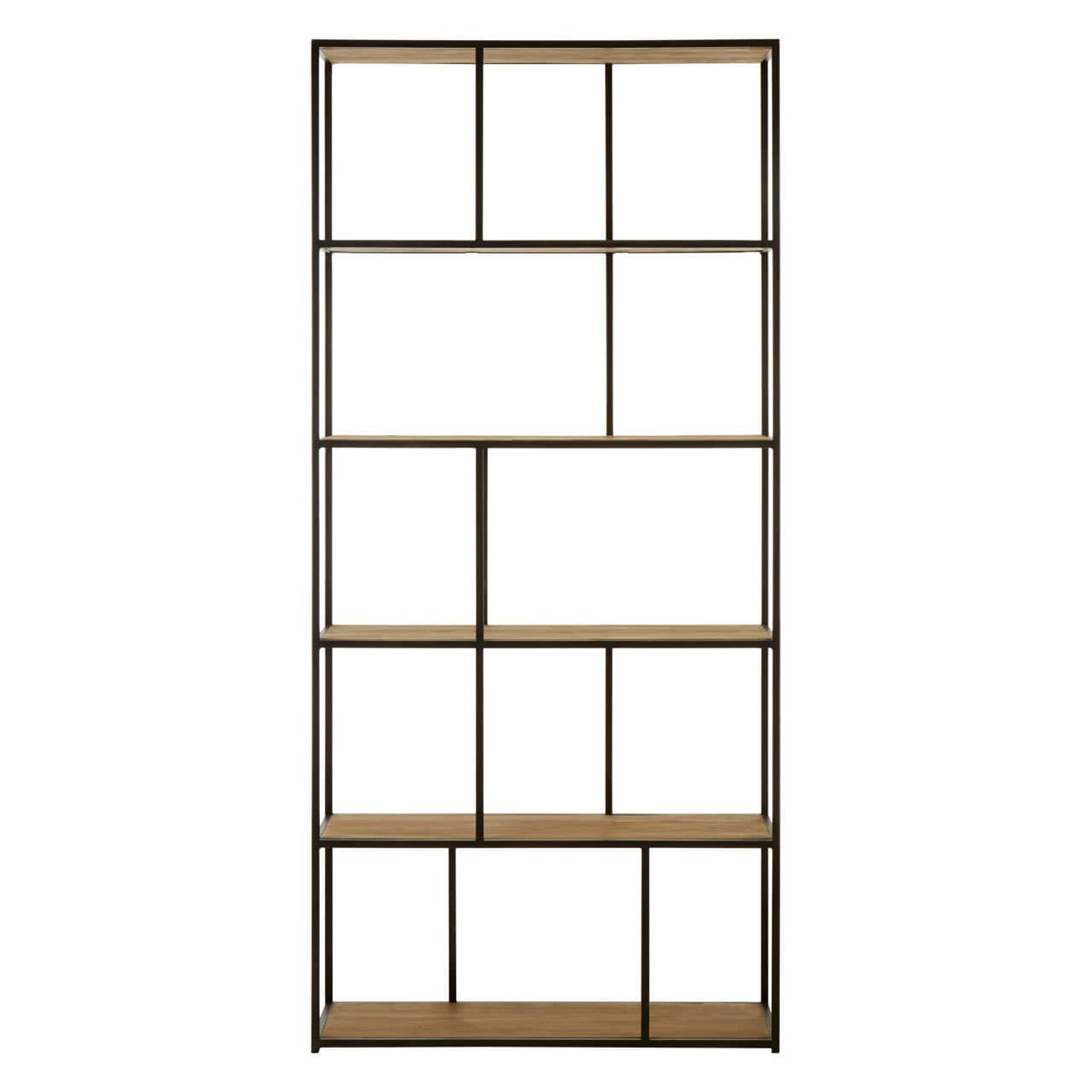 Formed from strong iron, the Mason shelf unit's minimal frame features a dark black finish. Each of the five shelves are created from sustainable pine wood, with rich graining and natural tones that create a striking tonal contrast with the dark frame.