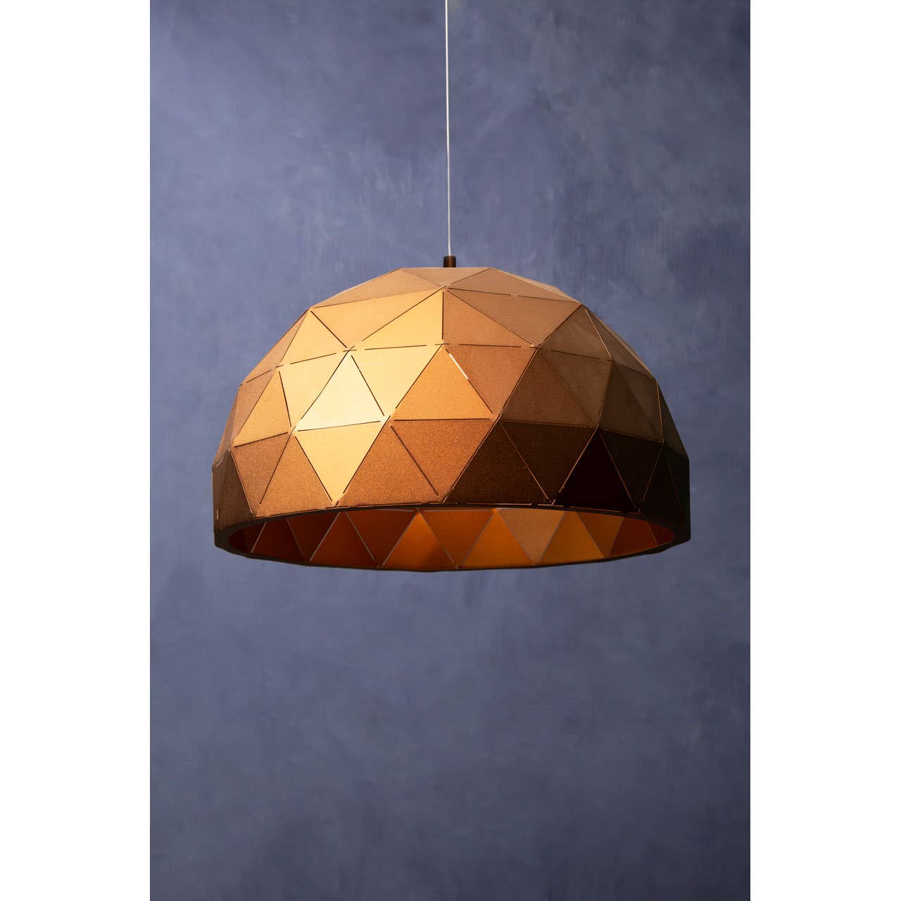 The shade is composed of a series of triangular forms made from tough steel. The rich coffee finish and exquisite gold interior make it easy to coordinate with a variety of design themes. A simple black cord suspends the light from the ceiling.