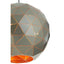 The shade is composed of a series of triangular forms made from tough steel. The silver finish and exquisite gold interior make it easy to coordinate with warm metallic design themes. A simple black cord suspends the light from the ceiling.