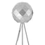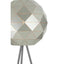 Its shade is made from a multitude of triangular steel forms, fitted with a slight gap between each to allow slivers of light to escape when lit. Coloured silver with a contrasting gold finish exterior, it adds a hint of geometric style to interior settings. The tripod legs are also made from durable steel and are given a sleek, reflective silver finish.