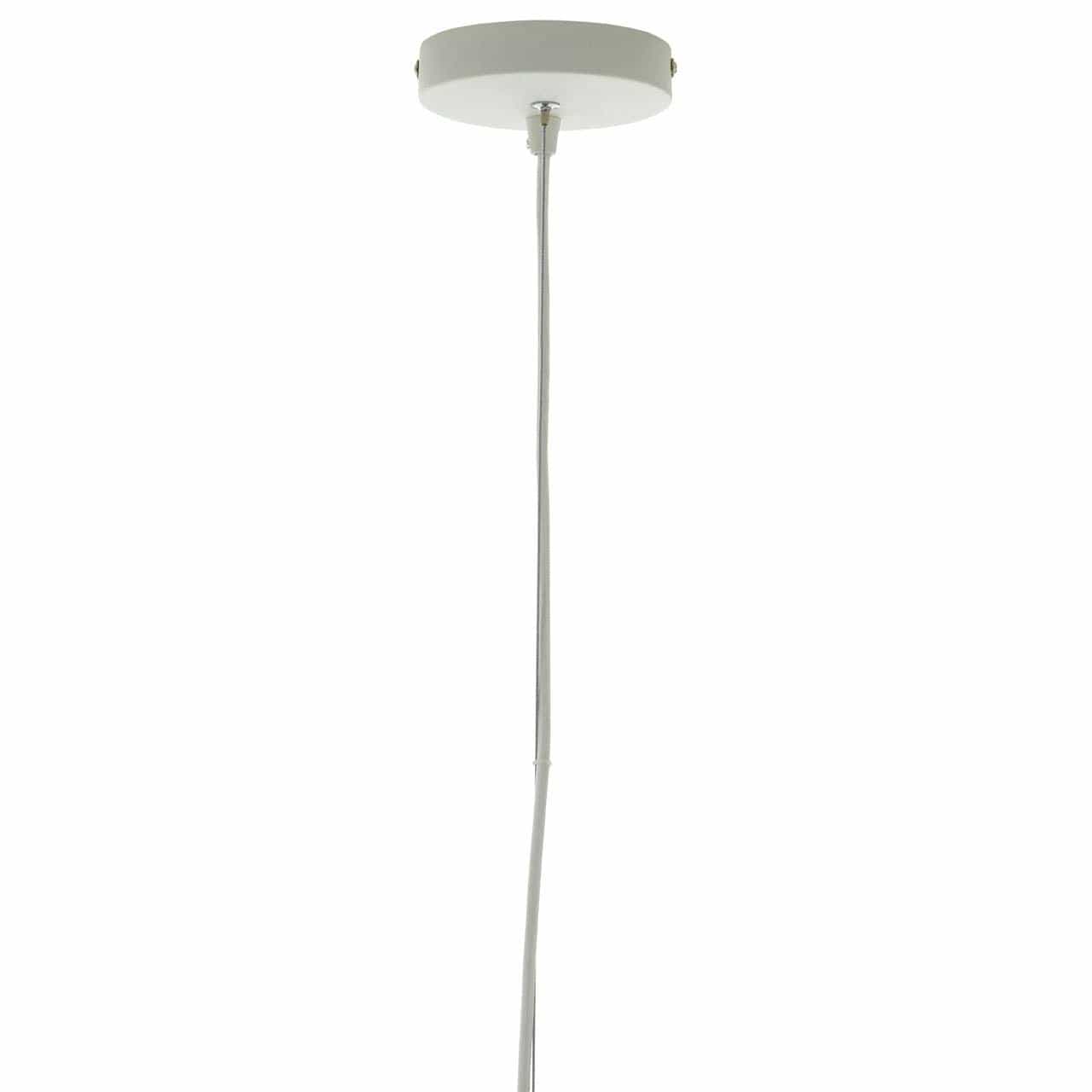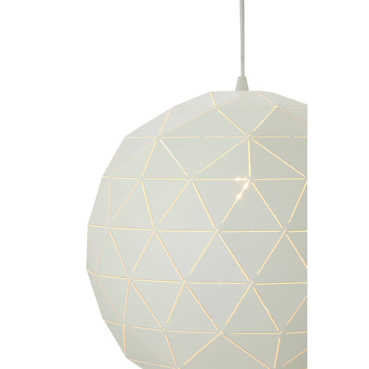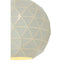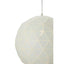 The shade is composed of a series of triangular forms made from tough steel. Slivers of space separate each segment, and when lit this allows small shards of light to escape. The white finish and interior make it easy to coordinate with monochromatic design themes. A simple white cord suspends the light from the ceiling.