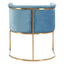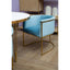 The chic Mias chair is upholstered with sumptuous velvet and has a powder blue finish. It features slightly flared arms and a curving backrest. Its frame is made from smooth steel and its gold finish perfectly complements the blue velvet. The curved lines and tactile fabric echo glamorous art deco style.