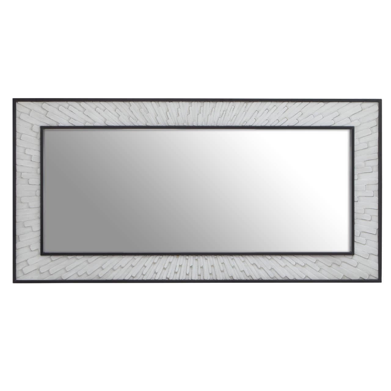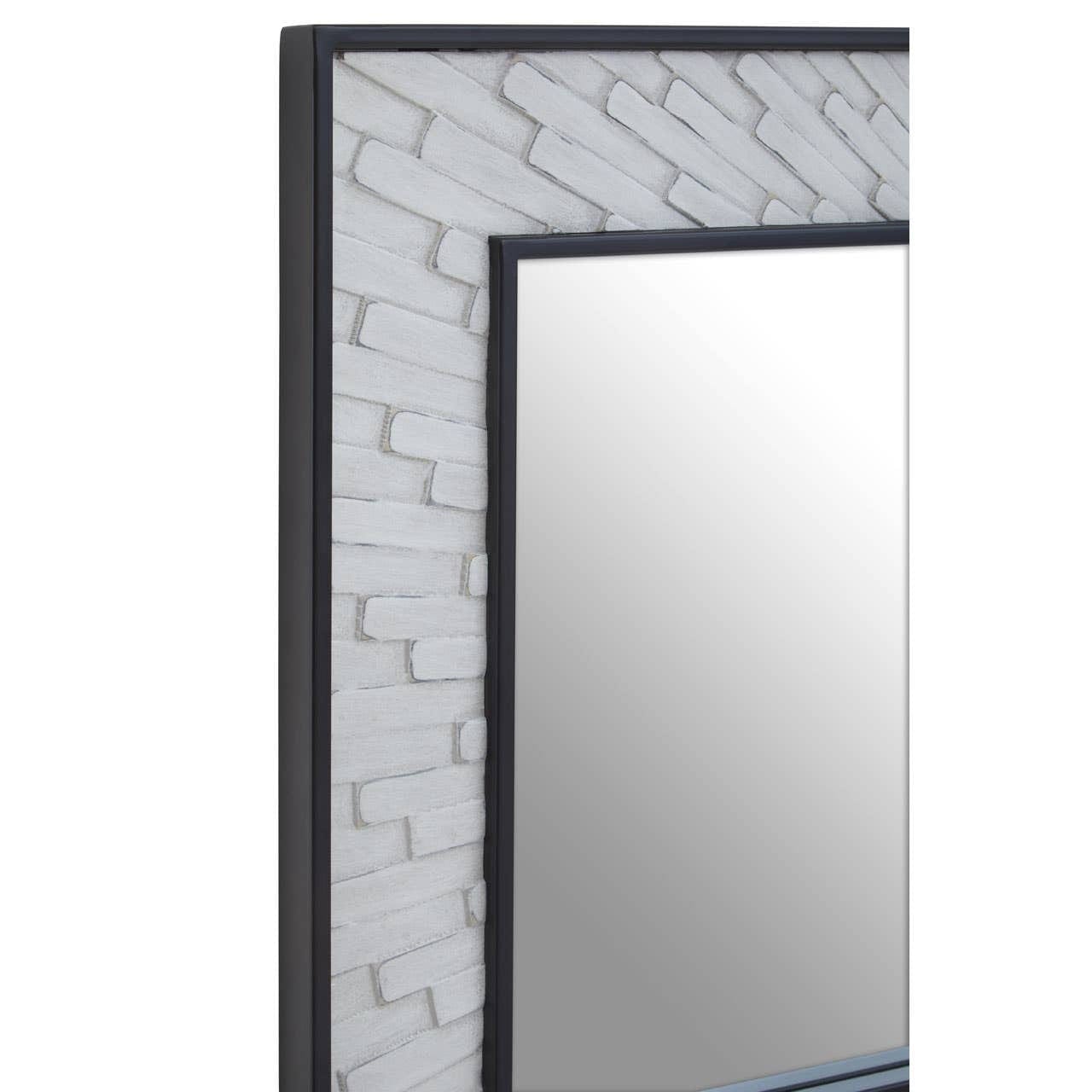 Bring refined style to your home with this modern wall mirror. The grey and white elm wood frame creates a textured look, while the bold black border adds contrast and sophistication. Perfect for entryways, living rooms, or bedrooms.