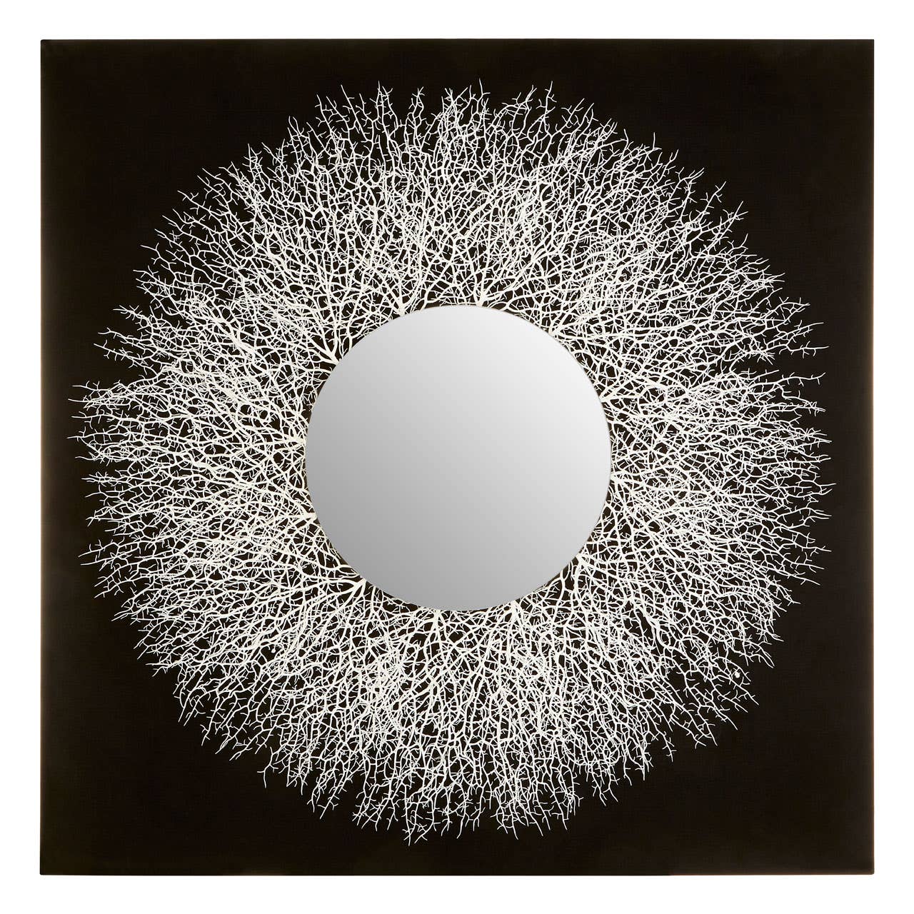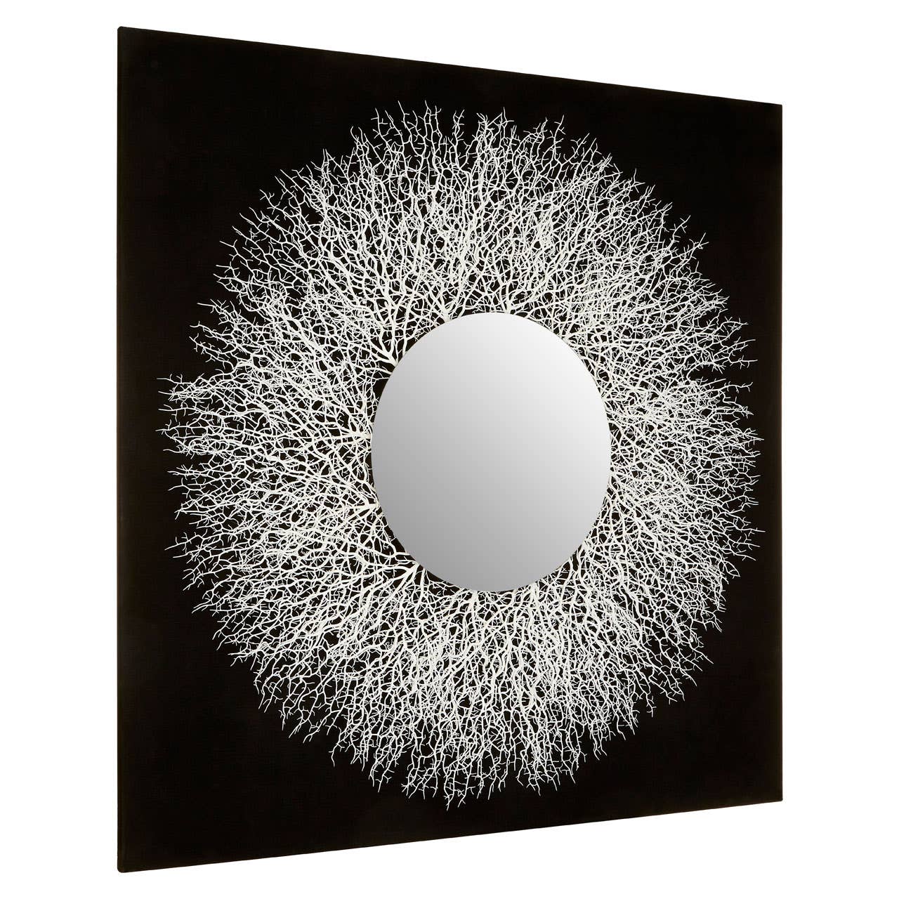 A host of slim, twig-like forms extend outwards from the silver coloured circular centre, standing out starkly against the deep black background. Coordinate it with contemporary, silver finished accessories and lighting.