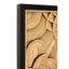 The opulent wall art is carved from natural light wood, with its repeating patterns creating the illusion of depth. A minimal black frame elegantly finishes the design.