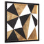 Black, gold, and white triangular forms combine to produce a clever optical effect. Framed in lightly grained black pine wood for a minimal finish.