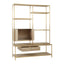 The frame of the Modica shelf unit is crafted from smooth stainless steel. Its minimal design ensures that the unit does not impose itself on its surroundings, and the brushed gold finish complements the pale oak wood shelves, cupboards and drawers. Its configuration makes it ideal for displaying a selection of books and ornaments.