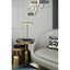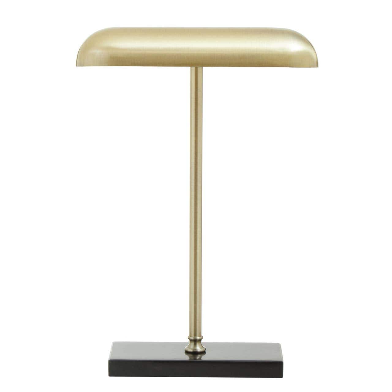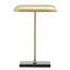 Featuring a brass finish shade, this table lamp will make a chick statement on the table. Easy to blend with a wide array of styles, the upper frame of this table lamp is perched neatly on a black rectangular marble base joined by a slim stem.