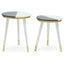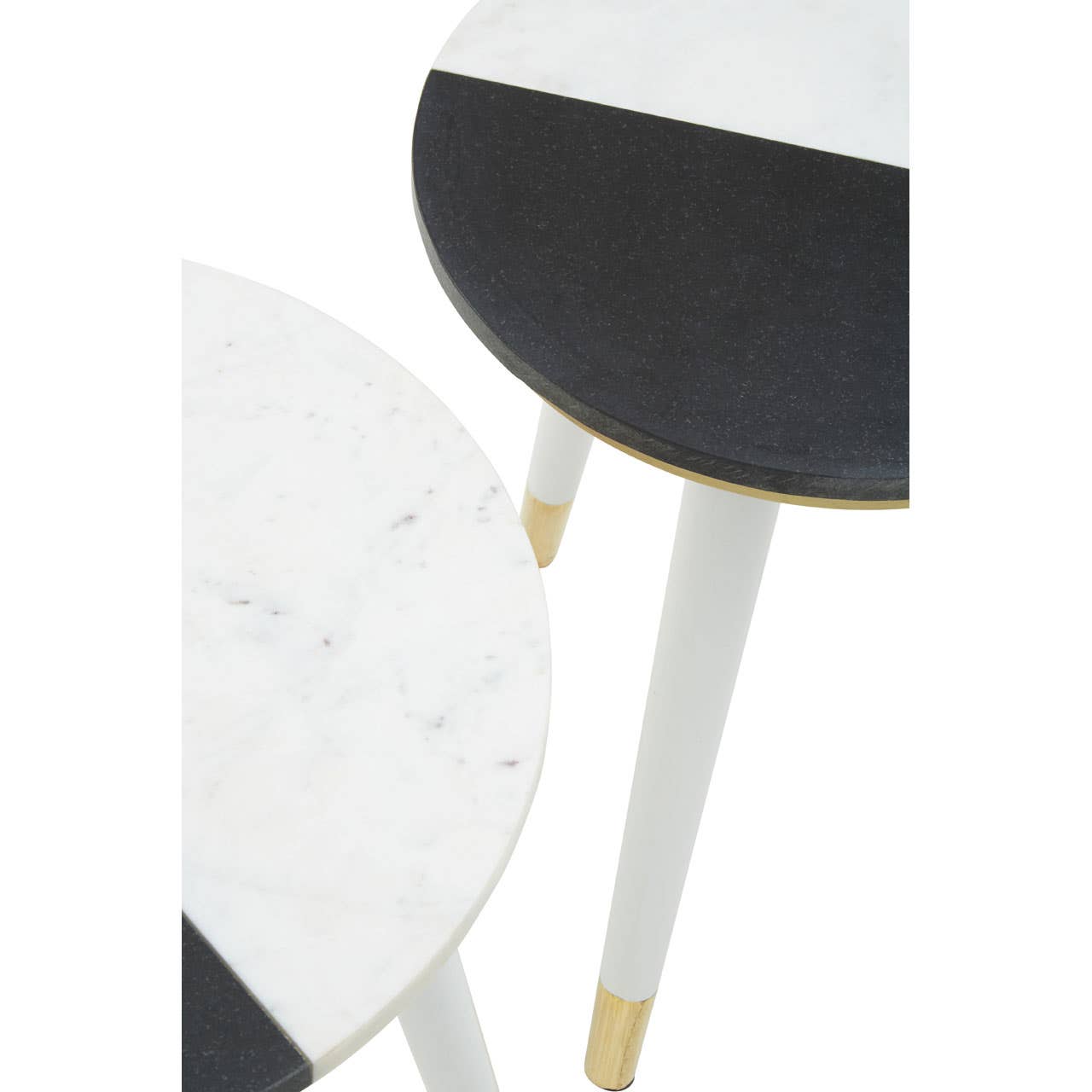 The Nirvana set of two side tables are modern and edgy. Each table is half white marble and half black marble, perching on silver wood legs which has gold tips.