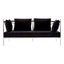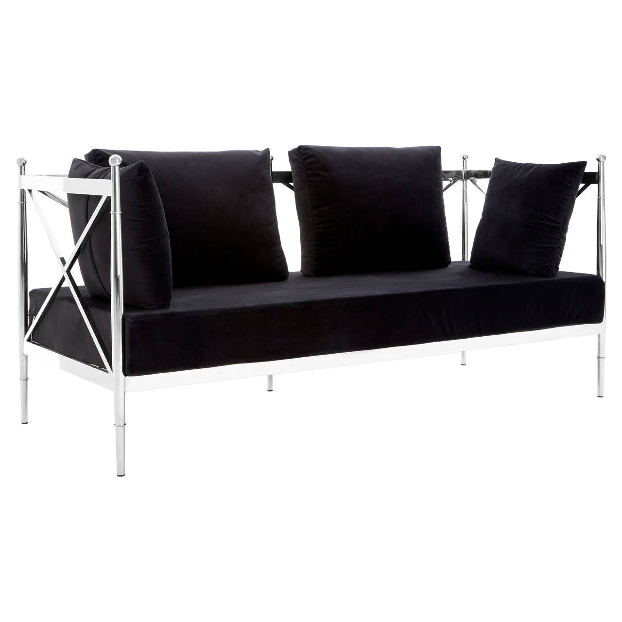 Created from strong steel, the frame of the Novo sofa boasts a cool silver finish, evoking a luxurious feel. The metallic body is counterpointed by the lush black velvet that upholsters the seat and four cushions, creating a soft textured finish. The Novo sofa is a distinctive design piece with a minimal, angular frame that is equal parts sophisticated and opulent.