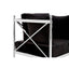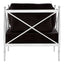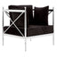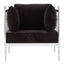 Created from strong steel, the frame of the Novo chair boasts a stylish silver finish, evoking a luxurious feel. The metallic body is counterpointed by the lush black velvet that upholsters the seat and three cushions, creating a soft textured finish. The Novo chair is a distinctive design piece with a minimal, angular frame that is equal parts sophisticated and opulent.