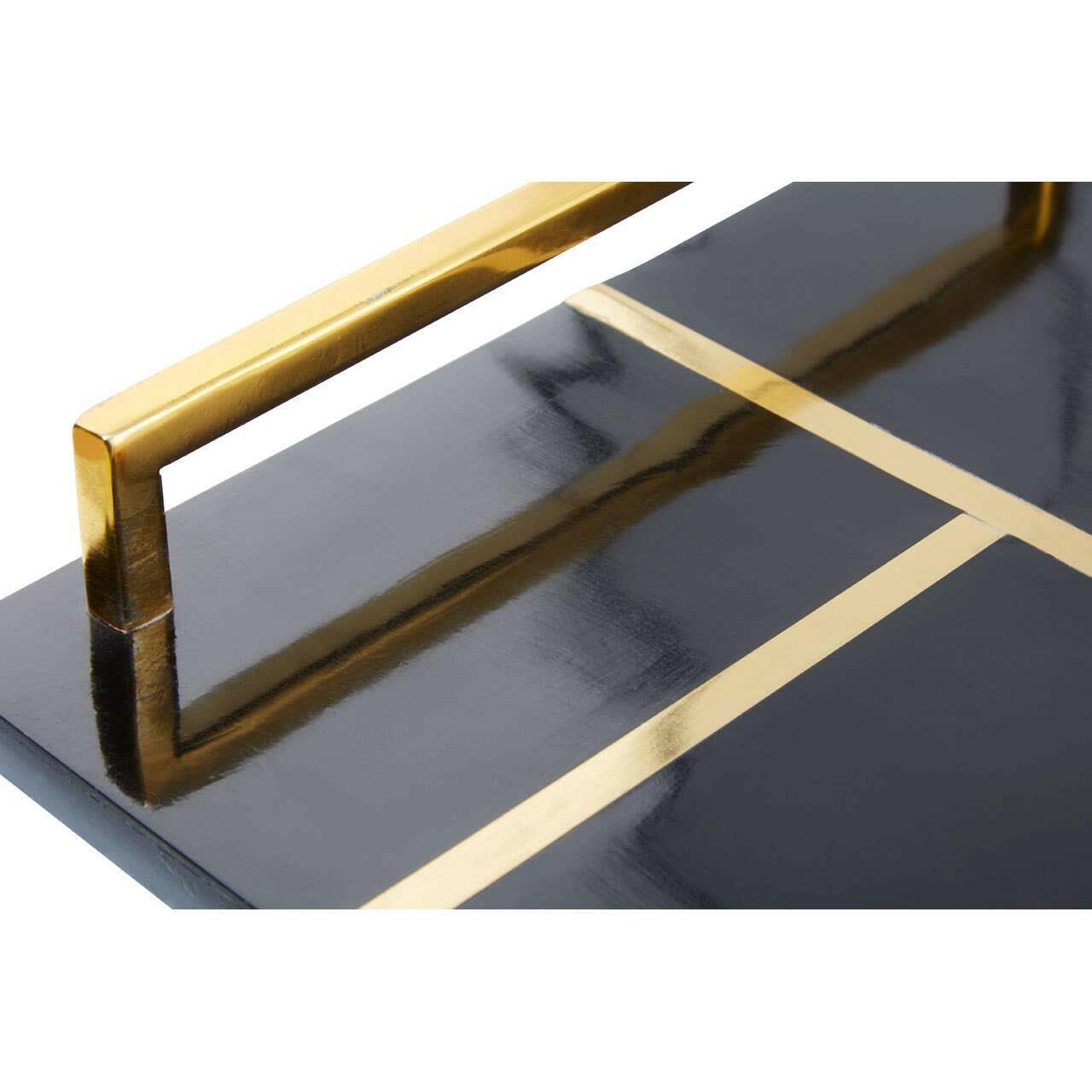 The Odell tray has a rectangular design made from black resin in a smooth finish. The surface is inlaid with brass filets complemented with sleek side handles enhancing the luxe aesthetic of the tray.