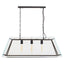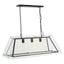 With an antique black finish metal structure encased in a clear glass frame, this pendant light boasts an angular shape ideal for subtly industrial abodes and urban lofts. The light has three bulbs providing ample downward lighting on the surface.