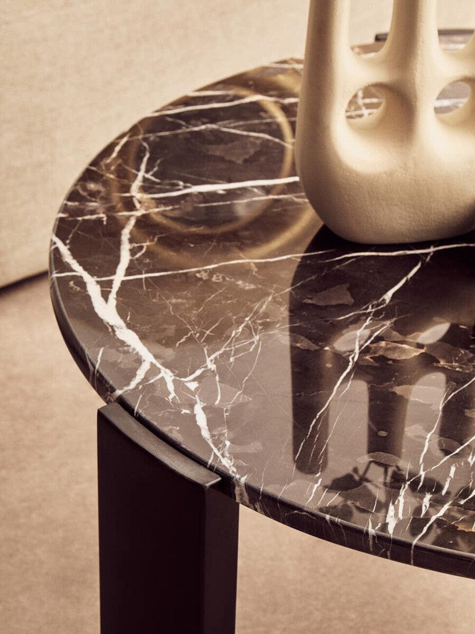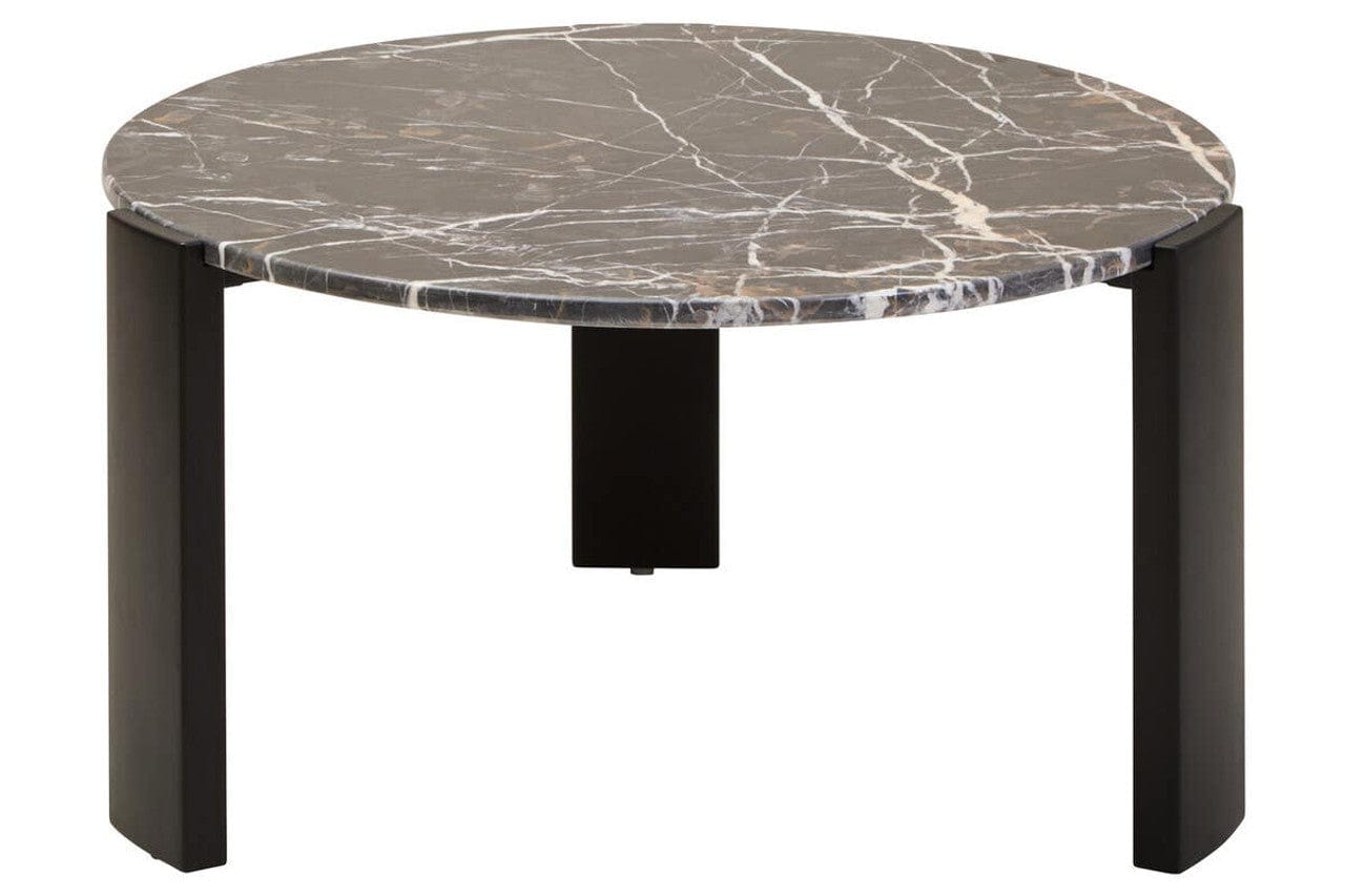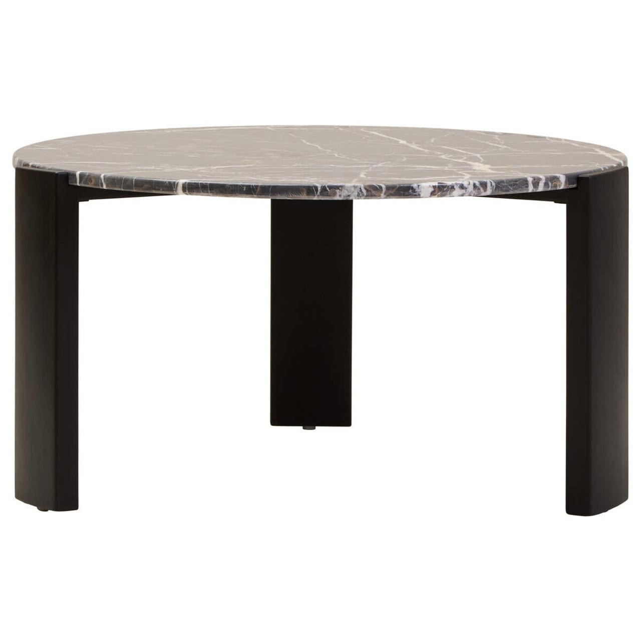 Introduce a touch of modern elegance to the living room with this large round coffee table featuring natural materials. The striking black marble top boasting unique organic veining, rests upon acacia wood legs, creating a cohesive and sophisticated look.