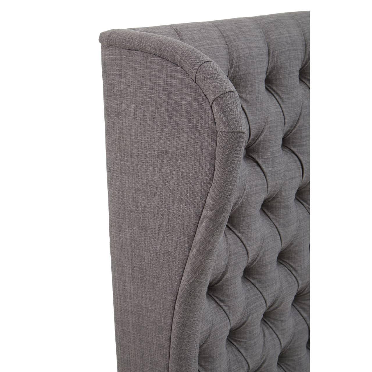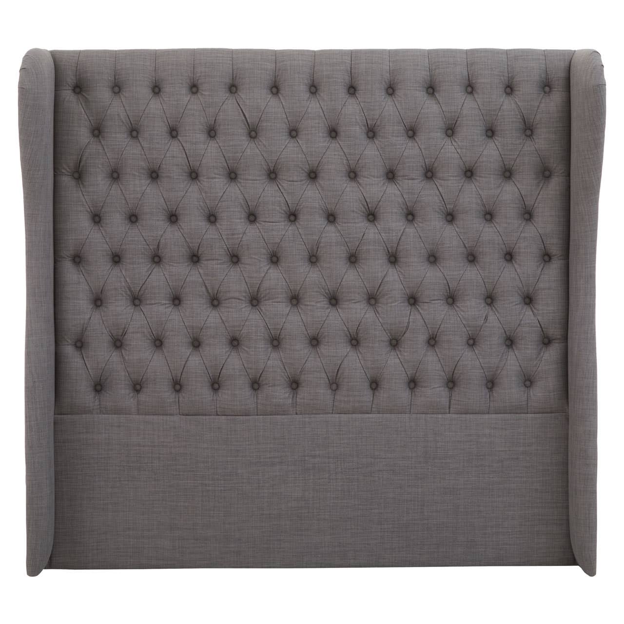 This headboard is constructed with straight lines, the silhouette is mid century modern as well as trendy. The grey fabric with deep button tufted fabric adds comfort whiles its wingback design makes it a piece to stand out alone.