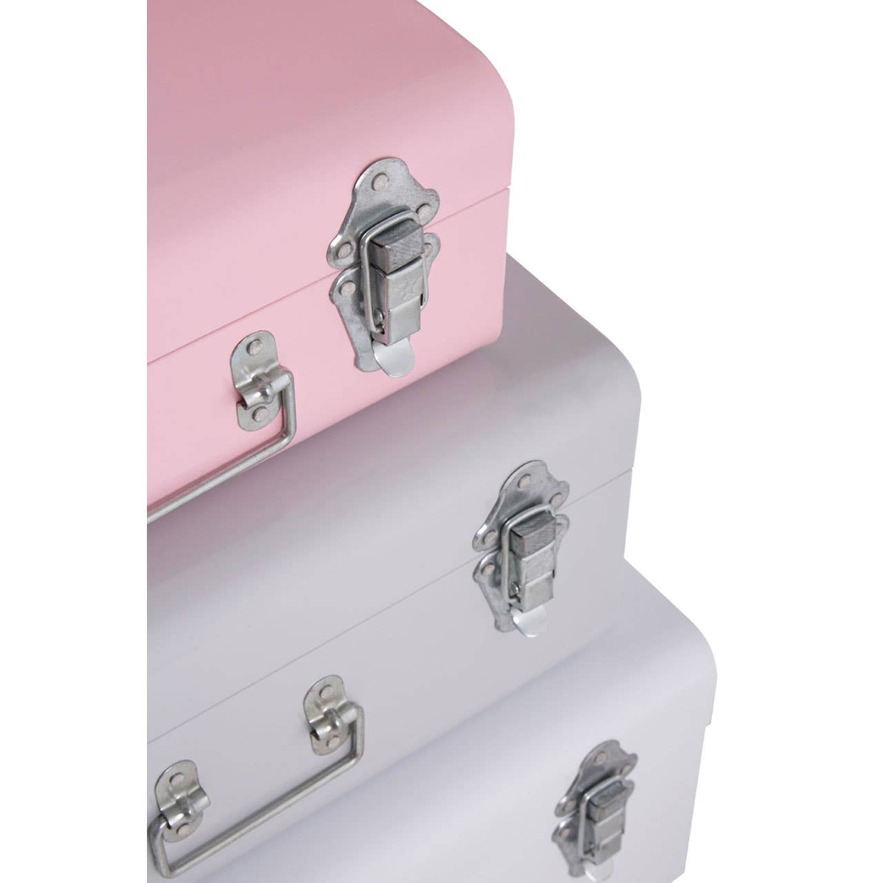 Parley Set Of Three Assorted Pink And Grey Storage Trunks