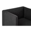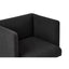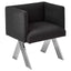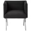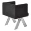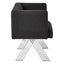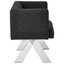 The seat is dressed in textured black fabric, and the design lines are restrained. Intersecting lines of stainless steel angle out beneath, with a silver finish that contrasts the fabric. Pair it with the Piermount dining table.