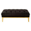 The rectangular Piermount ottoman is upholstered with soft black velvet to produce a finish that rewards the touch. Its deep button tufting pays homage to classical design. The base has a low profile and a reflective gold finish to complement the sleek black. Coordinate it with the Piermount bar unit.