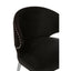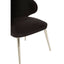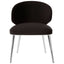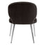 A contemporary luxe accent piece, the Piermount dining chair sits atop four slender, angled legs that are finished in a bright, reflective silver tone. The chair's simplistic, unfussy seat and backrest are upholstered in soft black velvet, creating a striking contrast with the cool metallic legs.