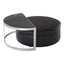 The Piermount collection embodies modern luxe design with its rich colour palettes and exquisite materials. The semicircular coffee table is created from smooth stainless steel with a reflective silver finish, while black marble adds an elegant touch to the table's top. The black faux leather footstool nests comfortable underneath the table when not in use.