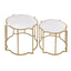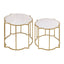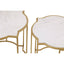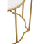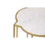 The Rabia accent table exhibits a pair of open-frame tables with smooth white marble tops in a quatrefoil pattern. Sturdy and lightweight, the slim brass finish openwork harmonises with the decorative top in shape and style.