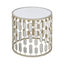 A mirrored glass top is neatly set into its rim and gives this table a reflective, glamorous appeal. Coordinate it with silver and gold contemporary luxe style lighting and accessories.