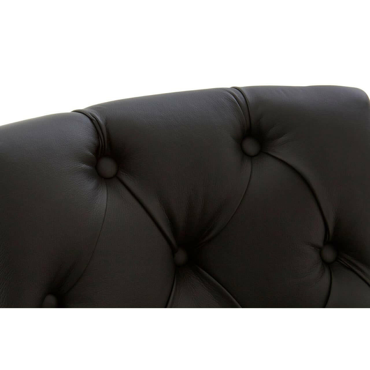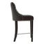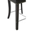 Inspired by traditional design, button tufting adds a decorative touch to the chair's curved backrest. Silver finished studs add a cool metallic accent and provide a tonal contrast to the smooth material. The chair's tall black legs are crafted from sustainable rubber wood and are joined by a convenient silver coloured footrest. The two rear legs are bowed, complementing the curved shape of the backrest.
