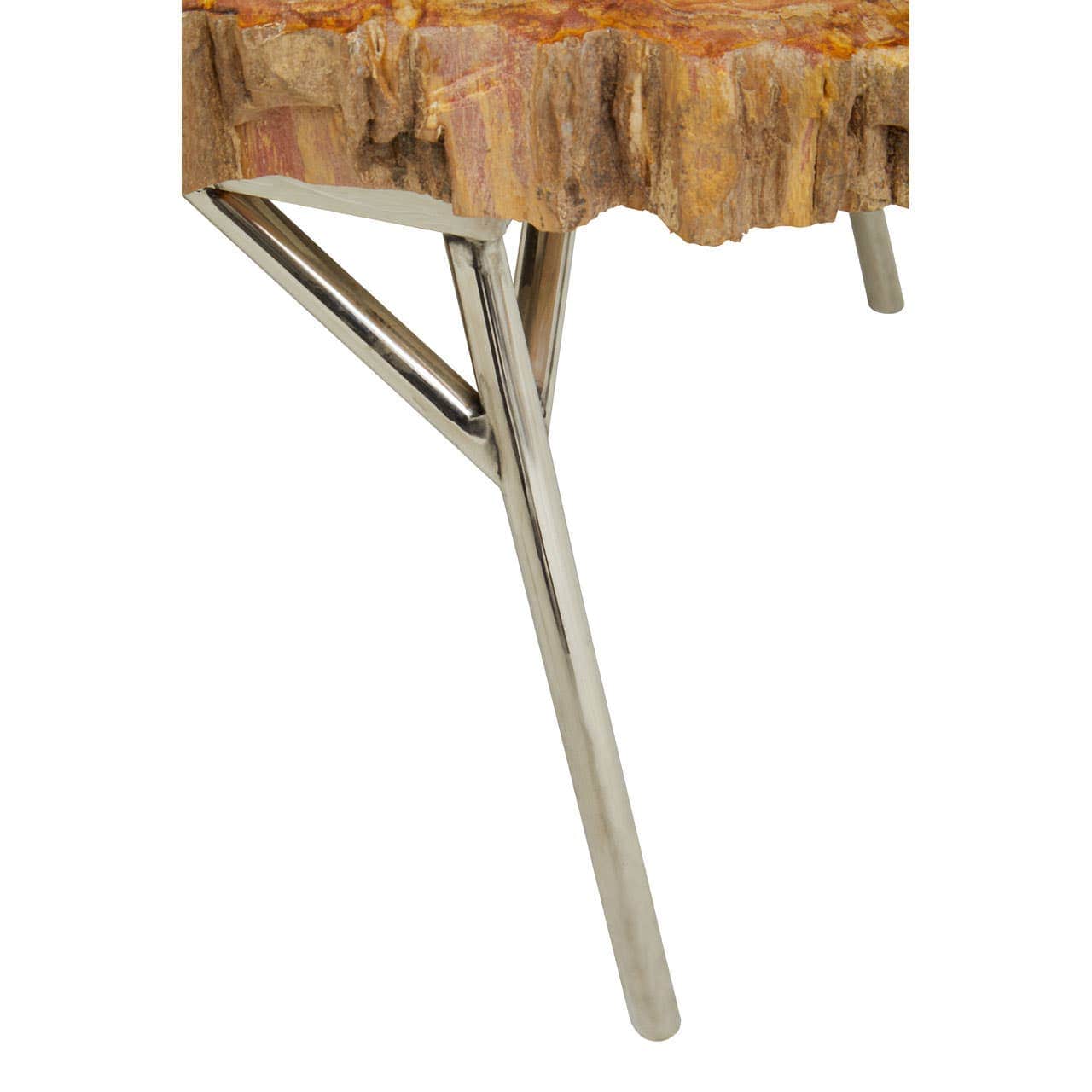 Minimal yet stylish, this petrified wood coffee table is a versatile addition to the nature-inspired abode. Featuring sublime graining, this table has an irregular top in a round shape that is supported by slanted metal legs.