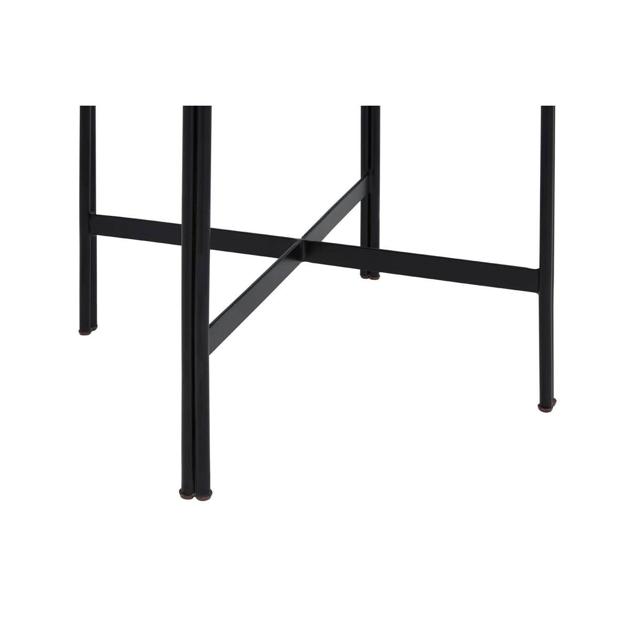 Ideal for living or drawing room, this contemporary side table has a petrified wood tabletop, which has been fossilized. The four black finished legs, extendining to form a cross-based design are made from iron.
