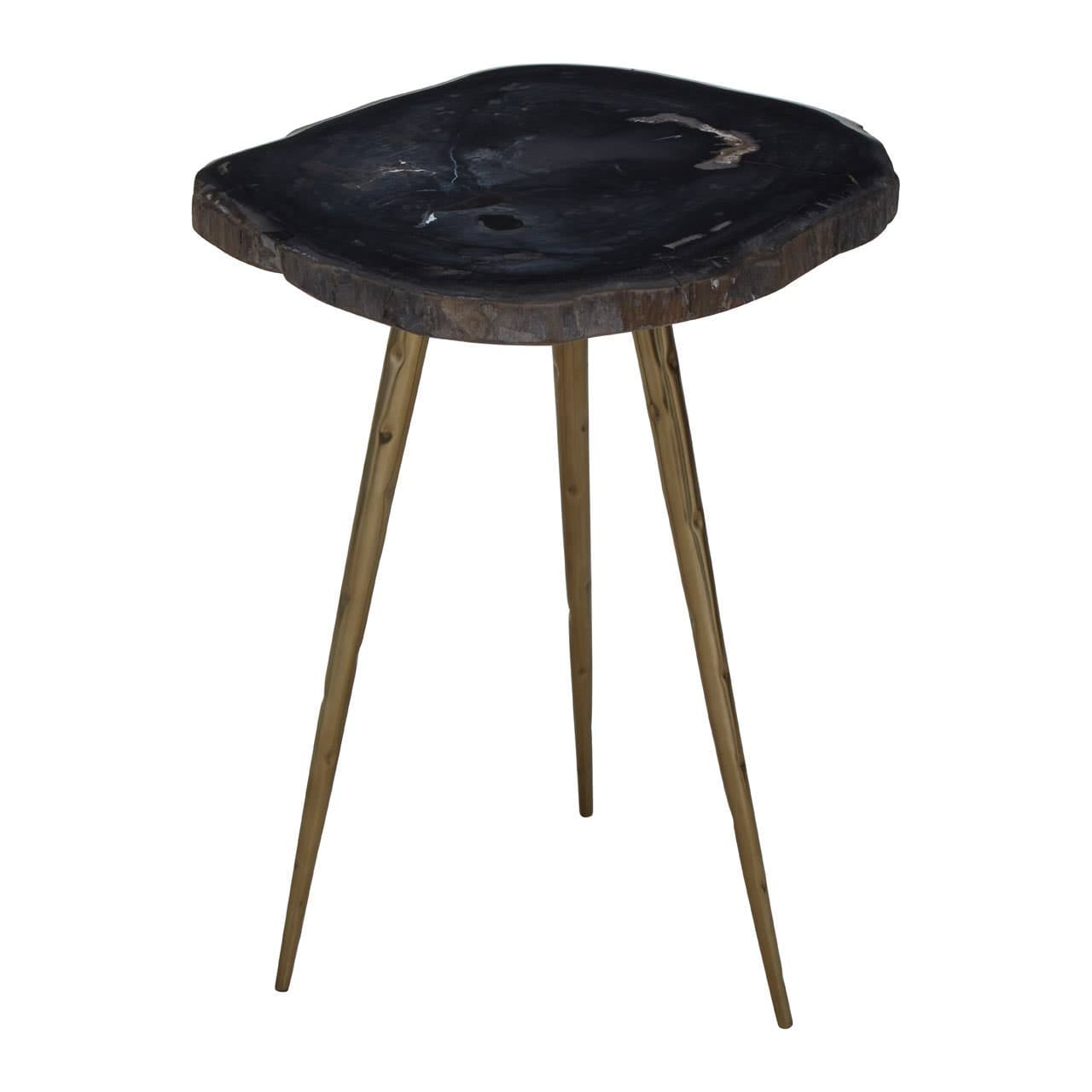 Relic Side Table With Petrified Wood Top and Brass Finish Legs