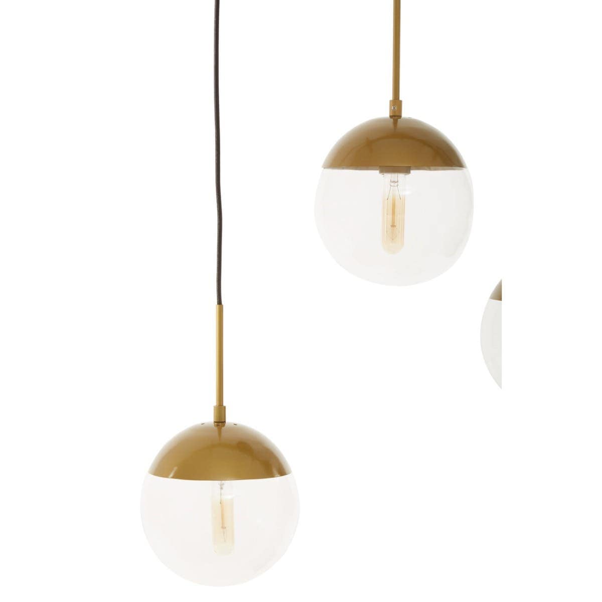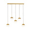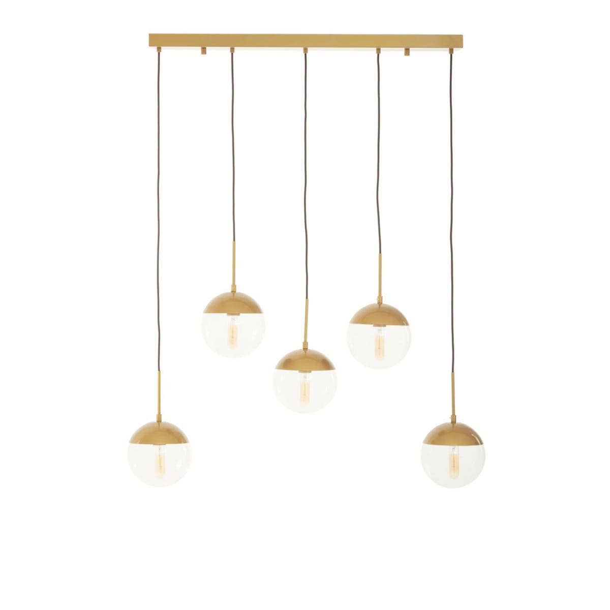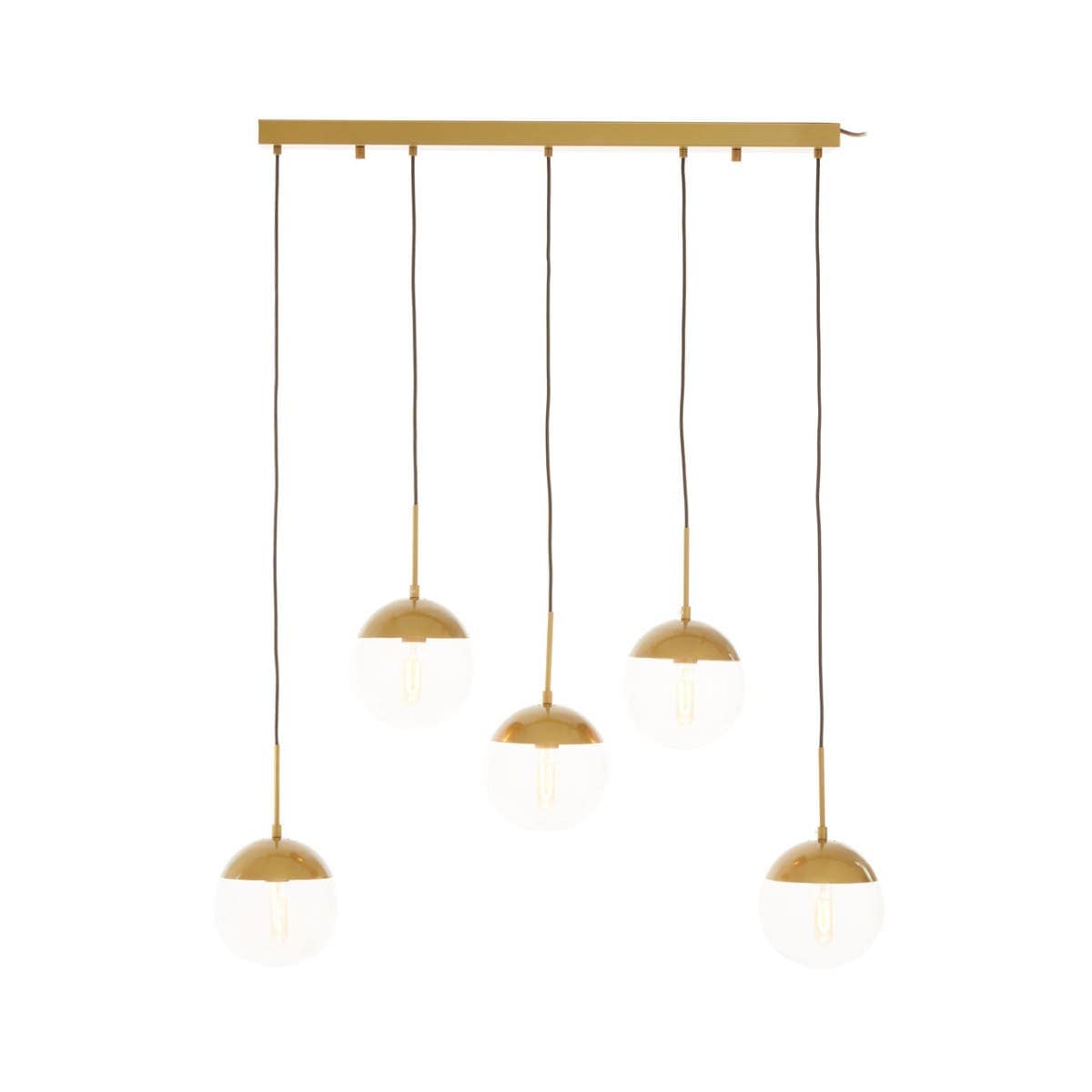 Lending an abstract charm to the dining room, this gold finish pendant light provides ample downward lighting with its 5 globe-shaped clear glass bulbs. Suspended with height-adjustable cords, this pendant light can be placed above the dining table.