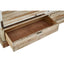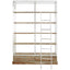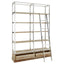 Its base and shelves are made from whitewashed pine wood. Two large storage drawers are integrated into the design. The silver finish stainless steel frame features a moveable ladder to help reach those top sections.